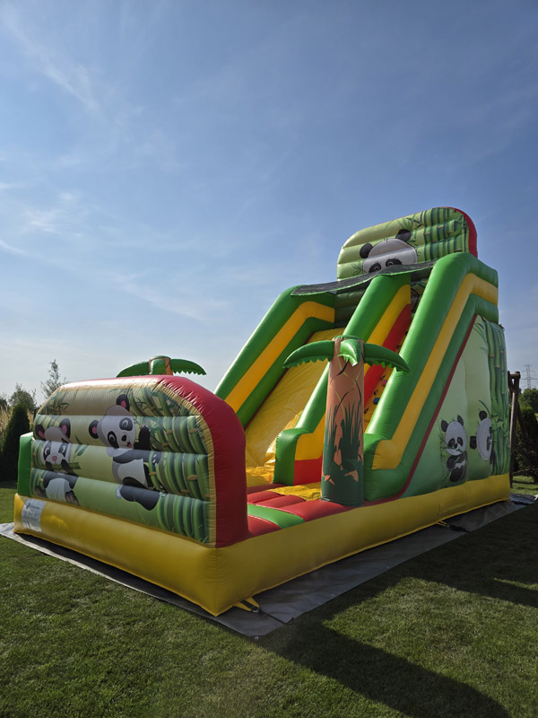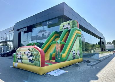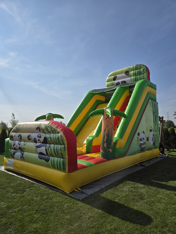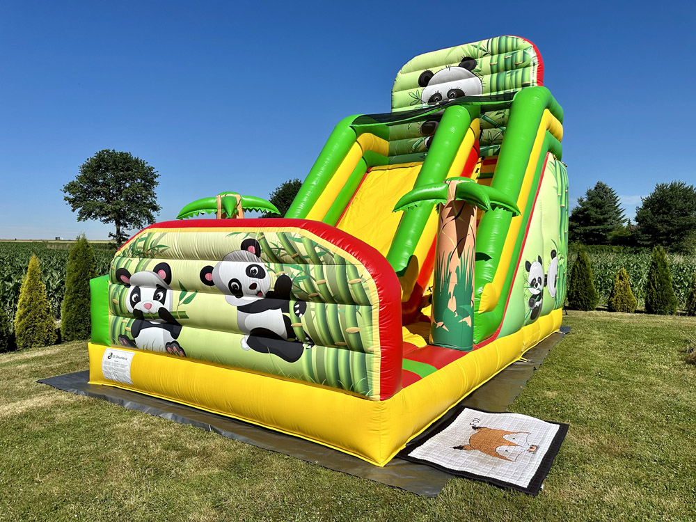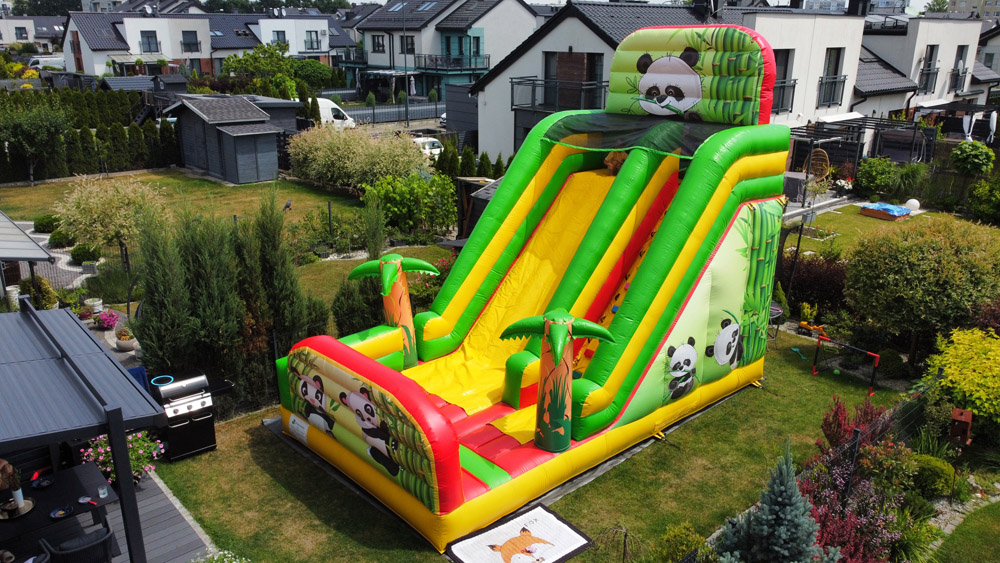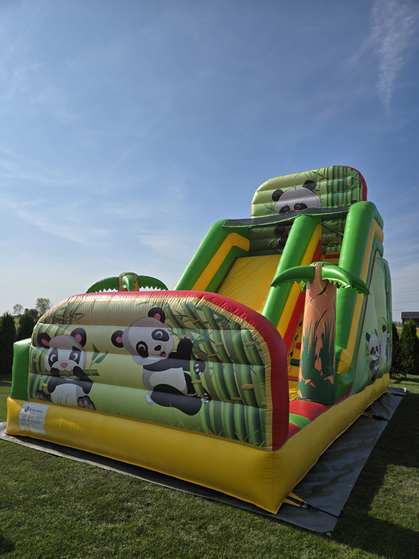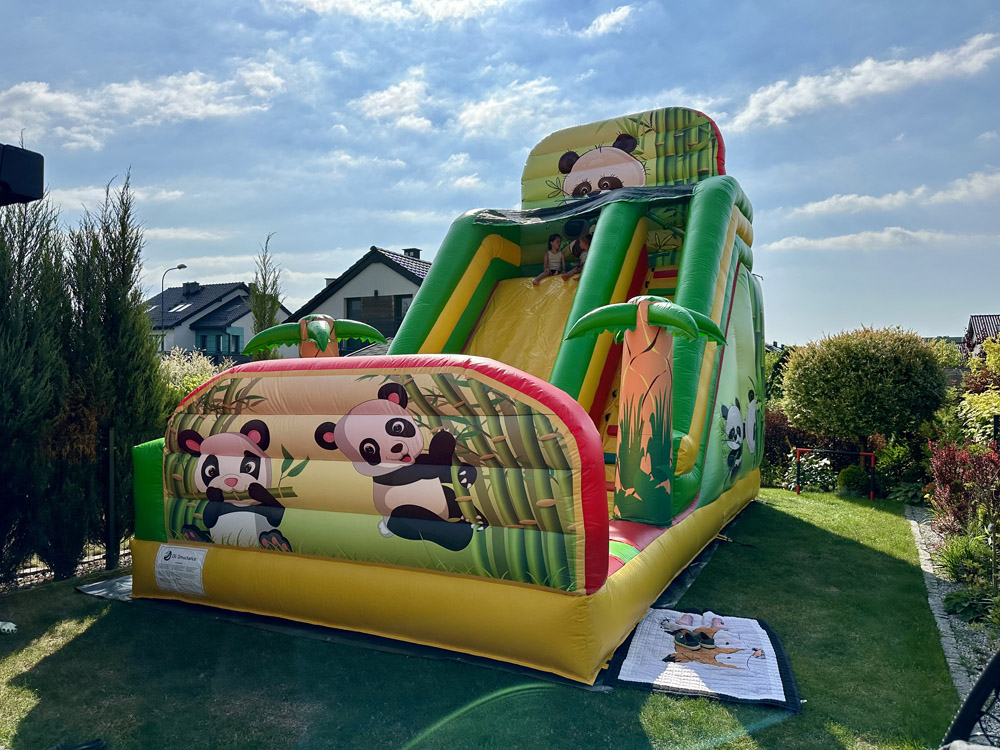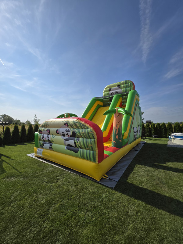 Poznaj nasz wyjątkowy dmuchaniec Panda, który przeniesie dzieci w kolorowy, tropikalny świat! Ten imponujący dmuchaniec ma aż 6 metrów wysokości, 7 metrów długości i 4 metry szerokości, co czyni go wspaniałą atrakcją na każdą imprezę.