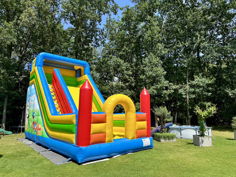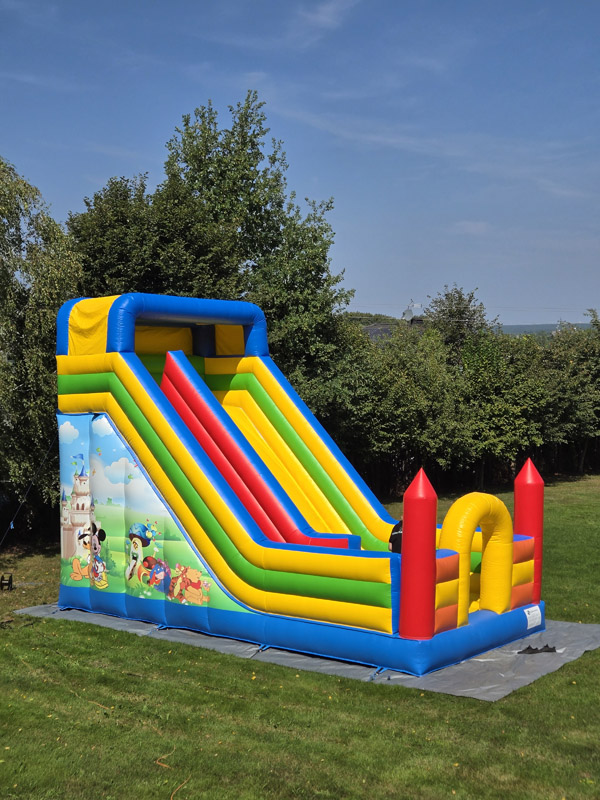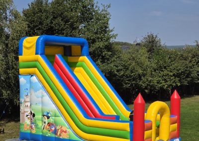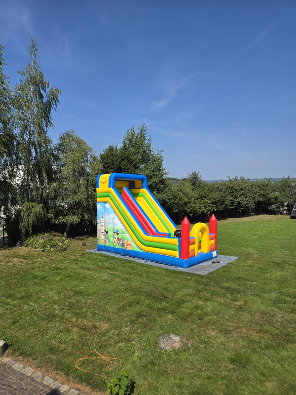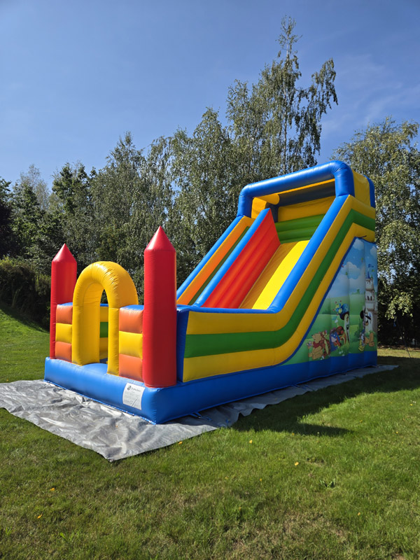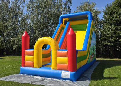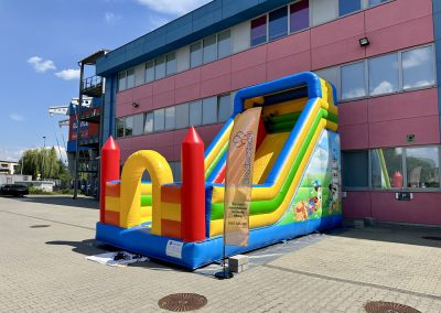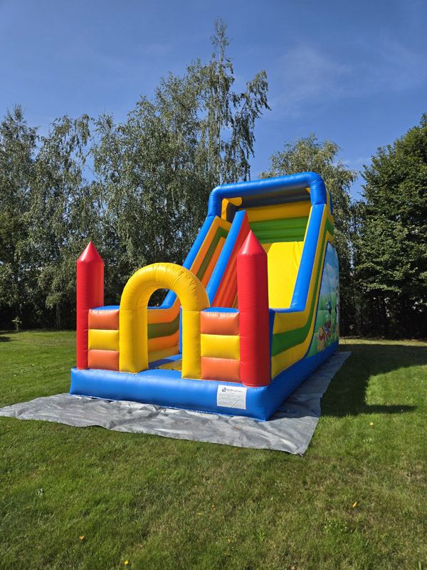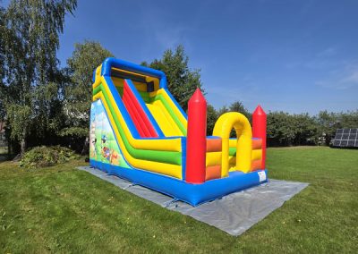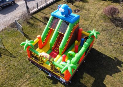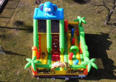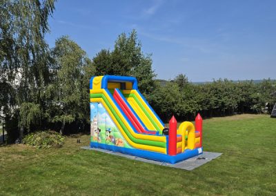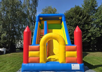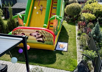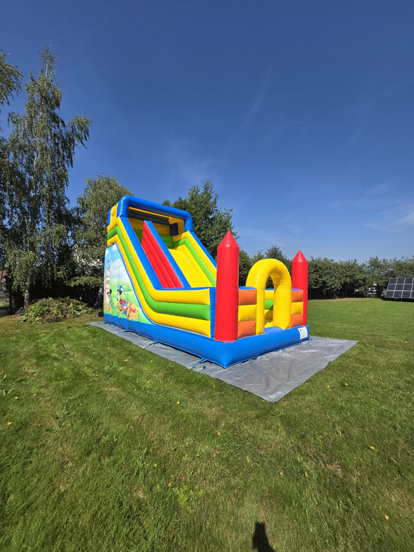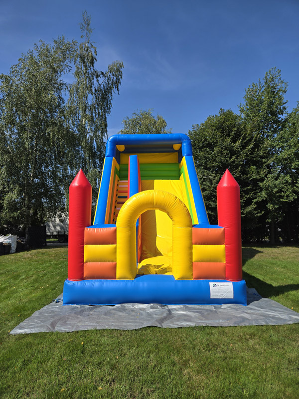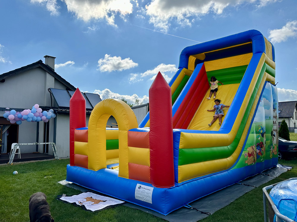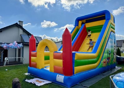 Ten przestronny dmuchaniec o wymiarach 6 metrów długości, 5,2 metra wysokości i 5,5 metra szerokości oferuje mnóstwo miejsca do skakania, wspinaczki i oczywiście – emocjonującego zjazdu po dużej ślizgawce!