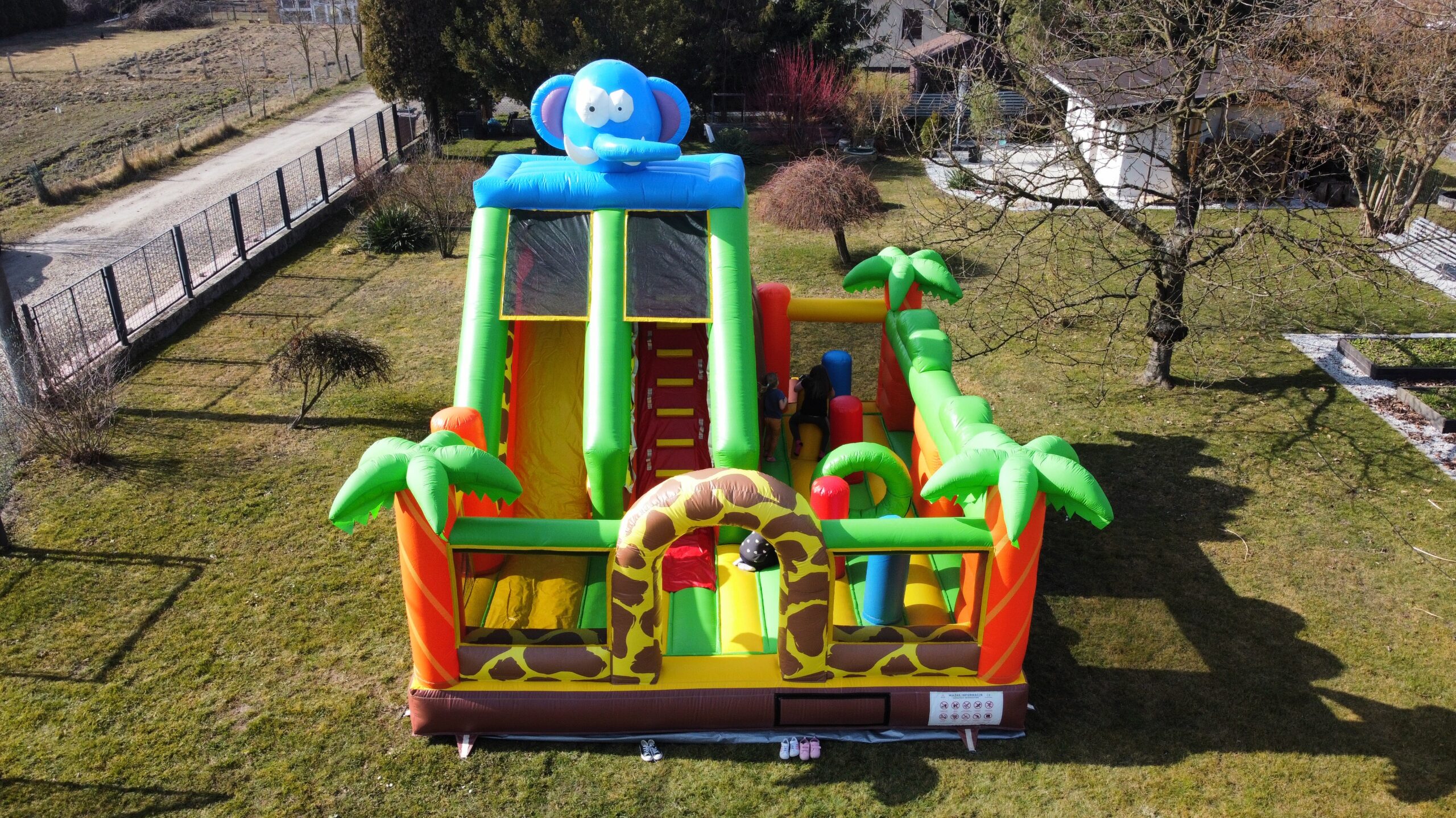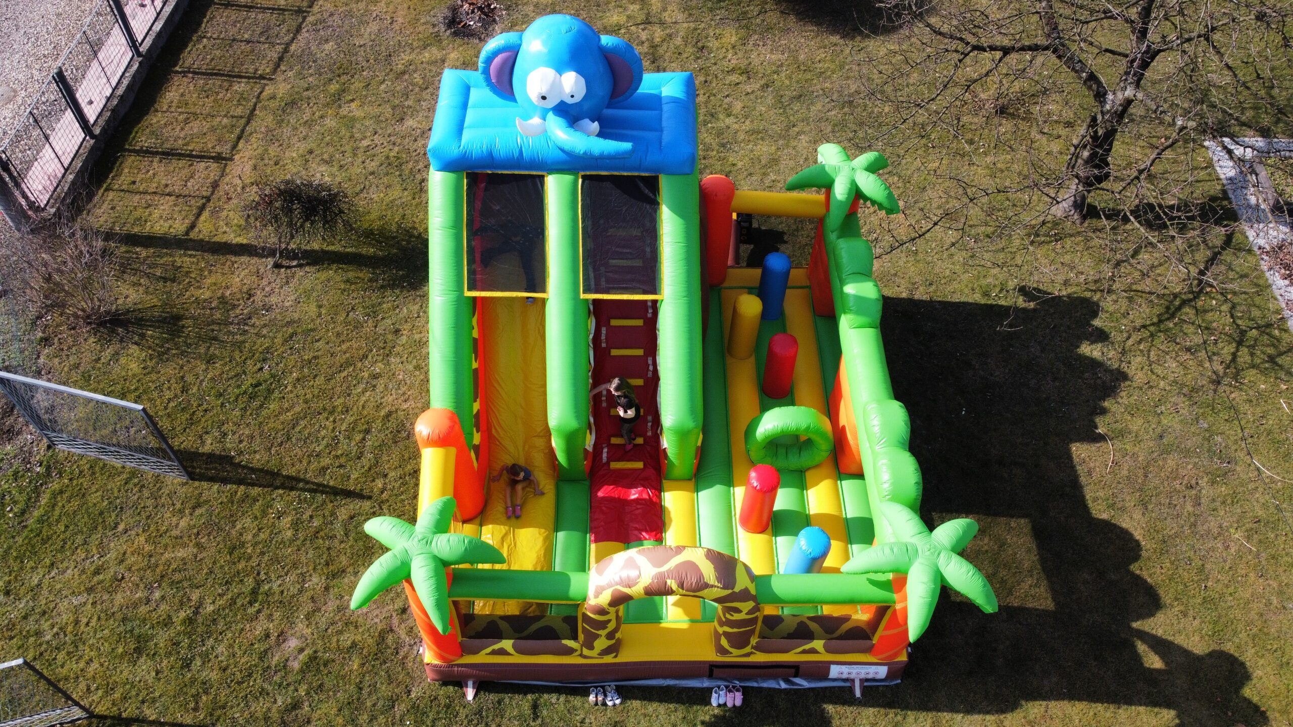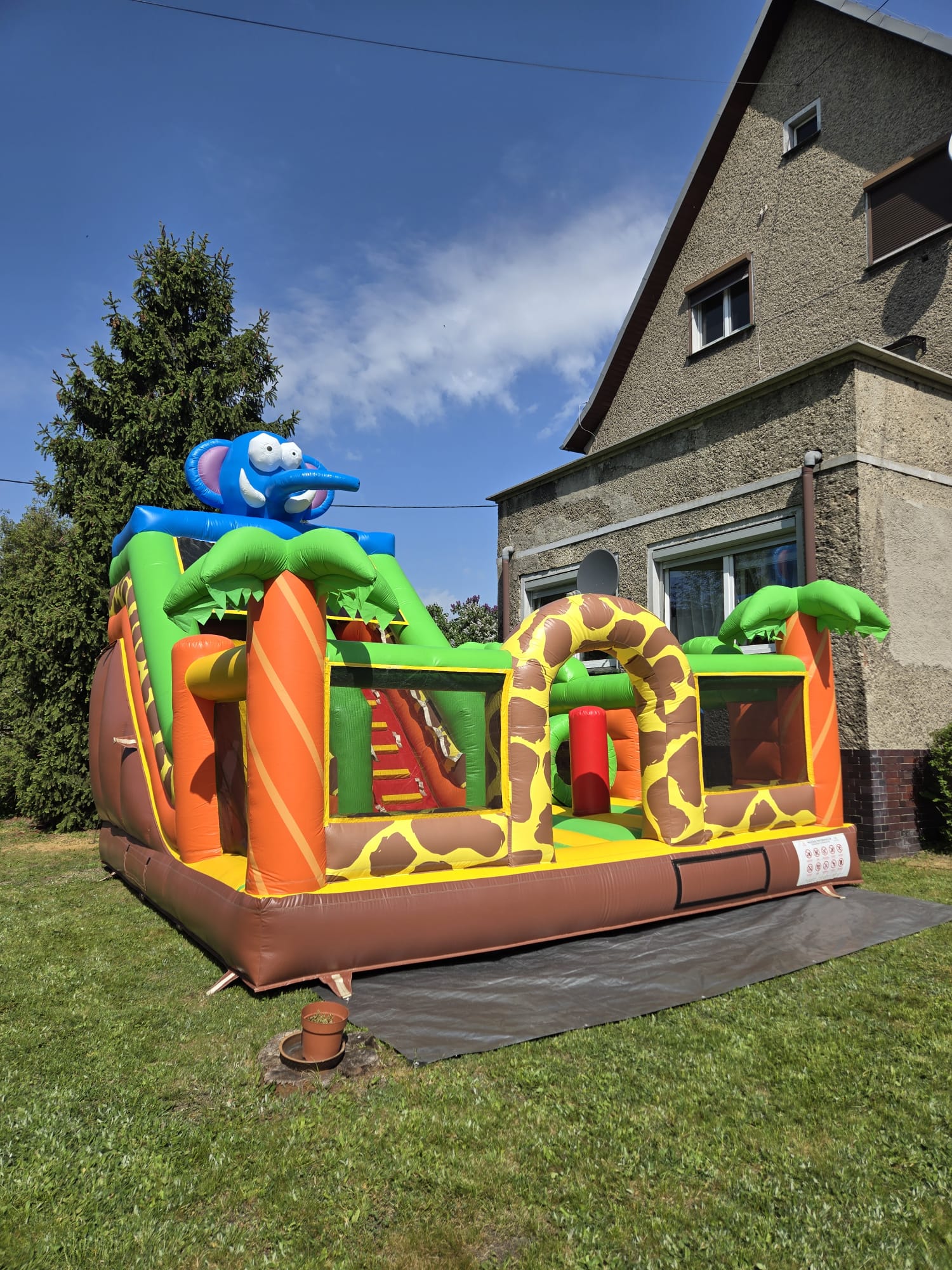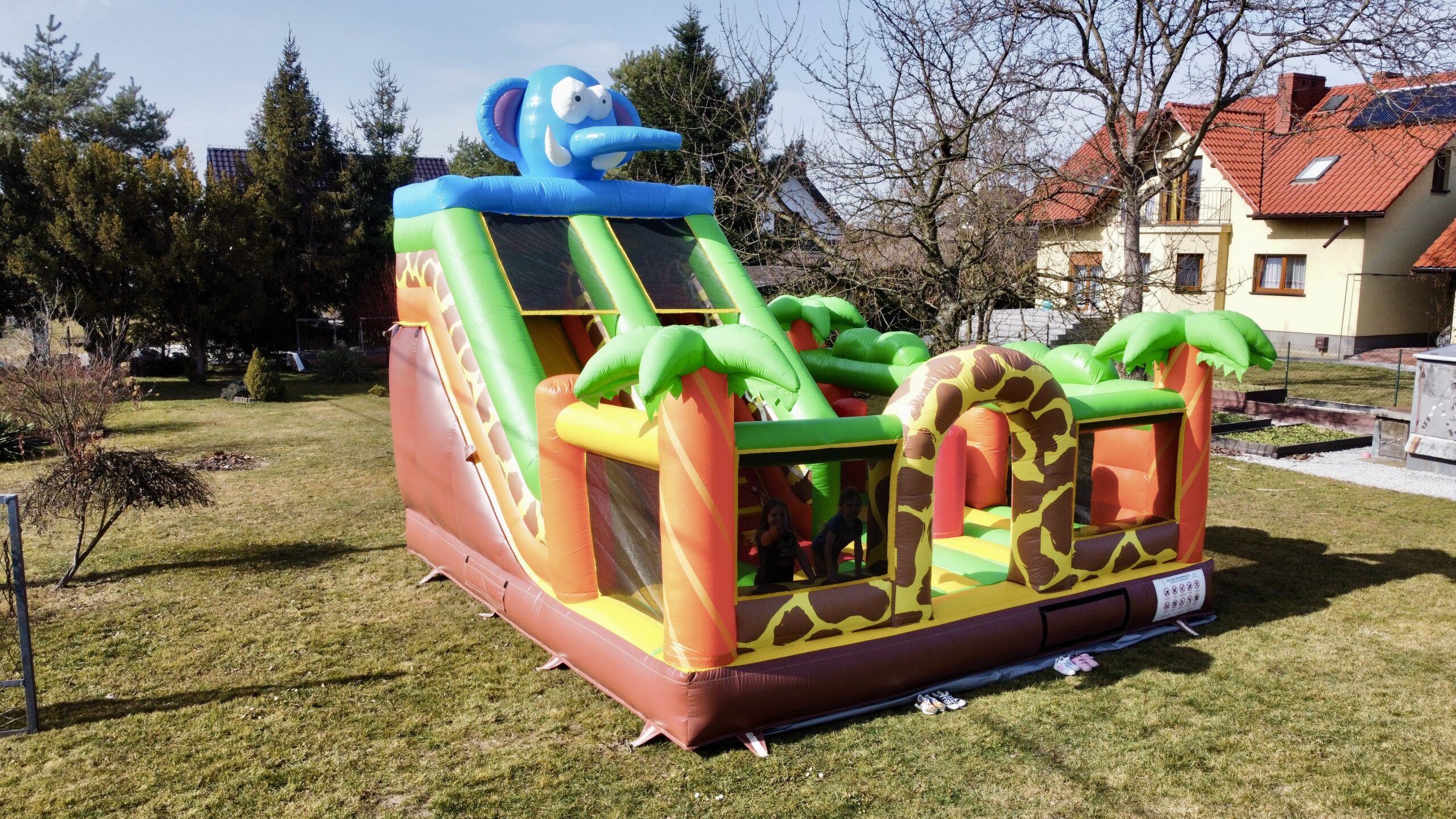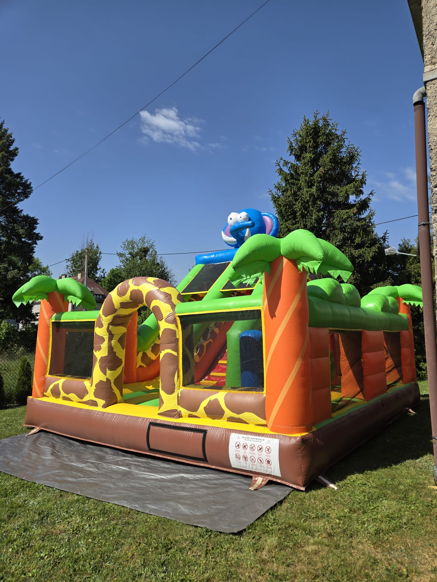 - Wymiary atrakcji po rozłożeniu: 4,4 m x 3,2 m x 5 m ( długość x szerokość x wysokość )