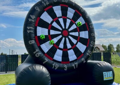 Absolutny hit każdej imprezy plenerowej! To nie jest zwykła tarcza do darta, lecz gigantyczna, dmuchana arena, która przenosi emocje boiska na zupełnie nowy poziom. Zamiast rzutek – używasz piłek z rzepami, a Twoim zadaniem jest celne kopnięcie, by zdobyć jak najwięcej punktów.